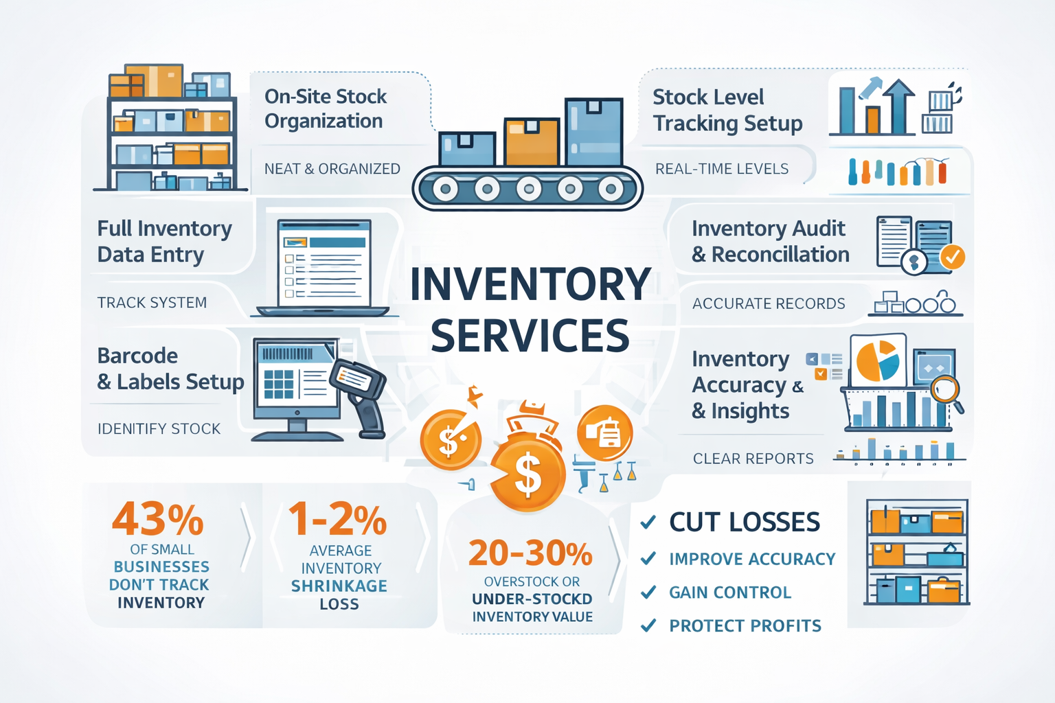We assist in setting up or organizing your inventory within your preferred software or platform.